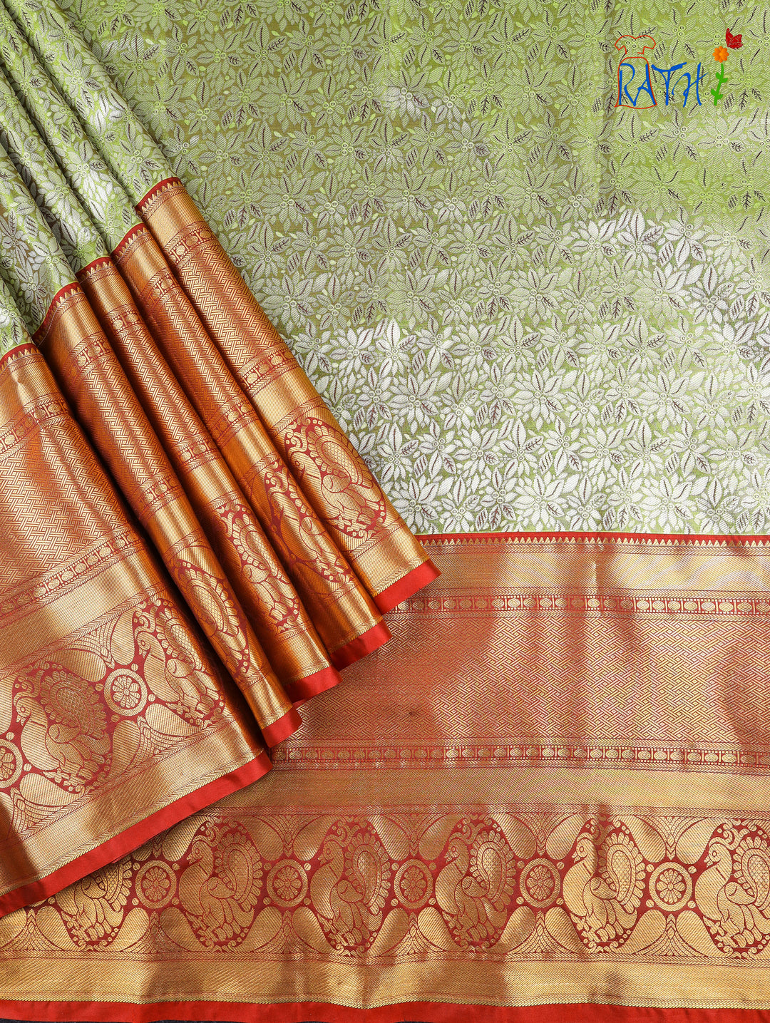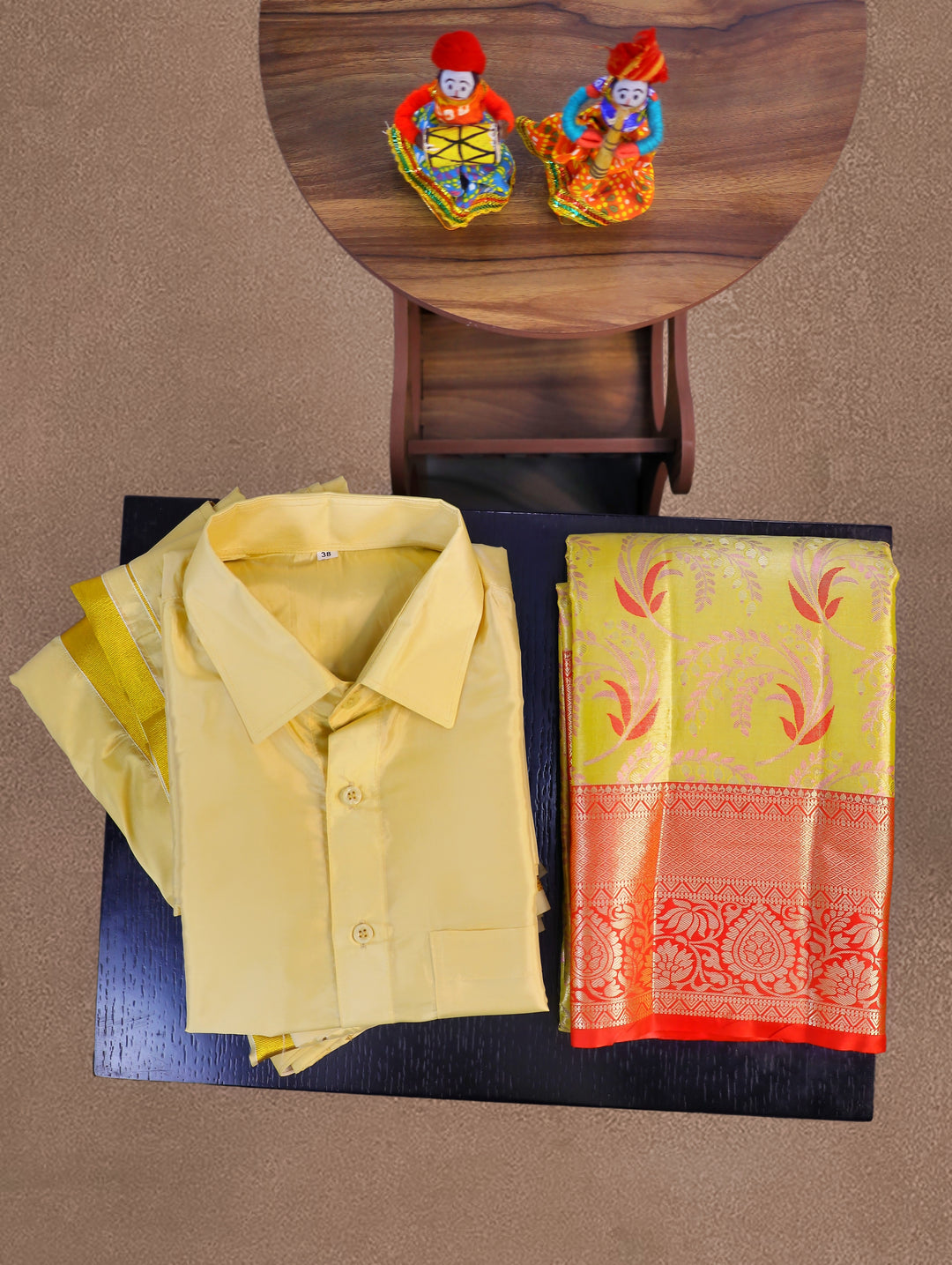 Antique Mustard-Gold Woven Leaf Motif Saree