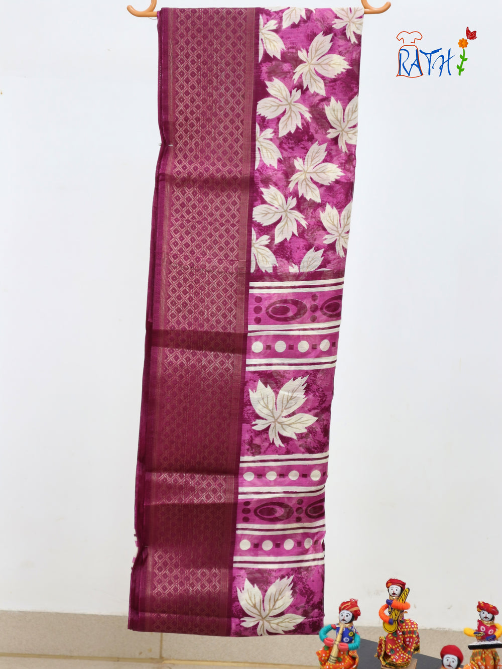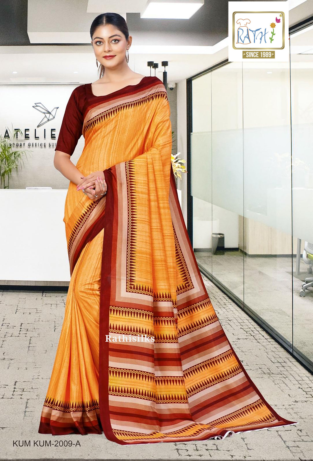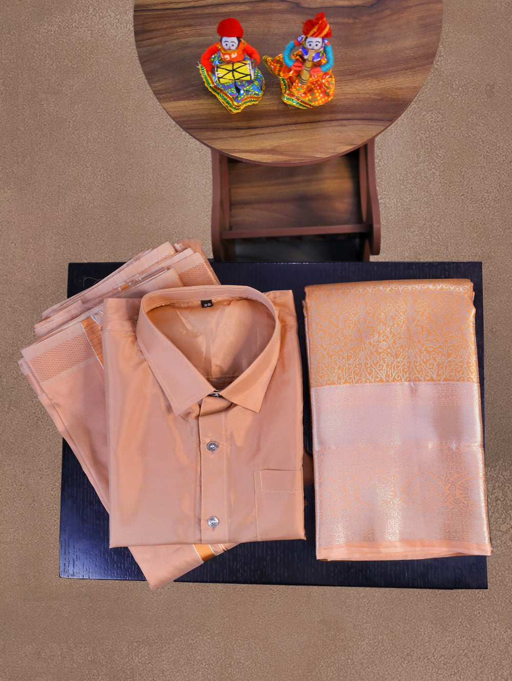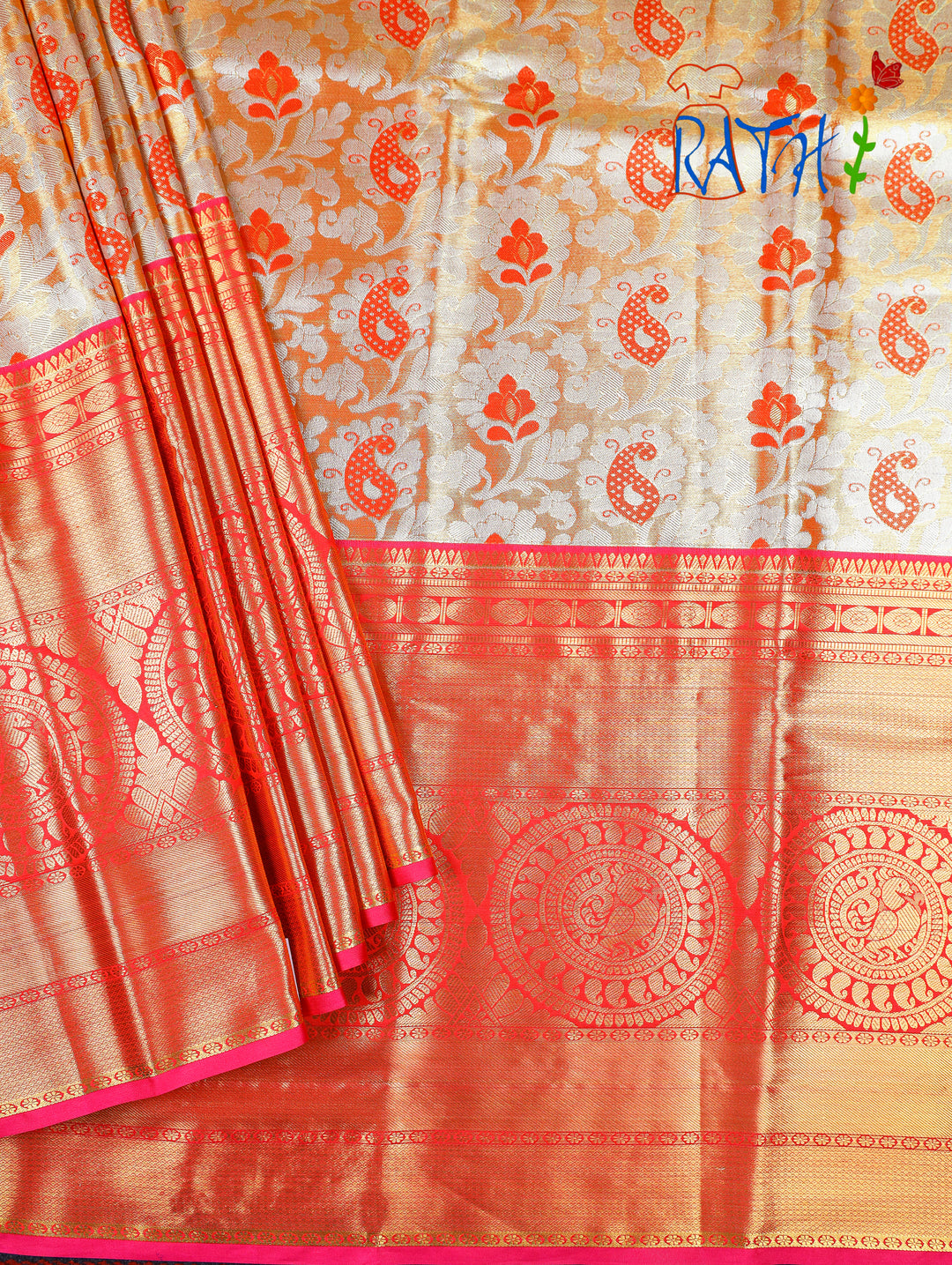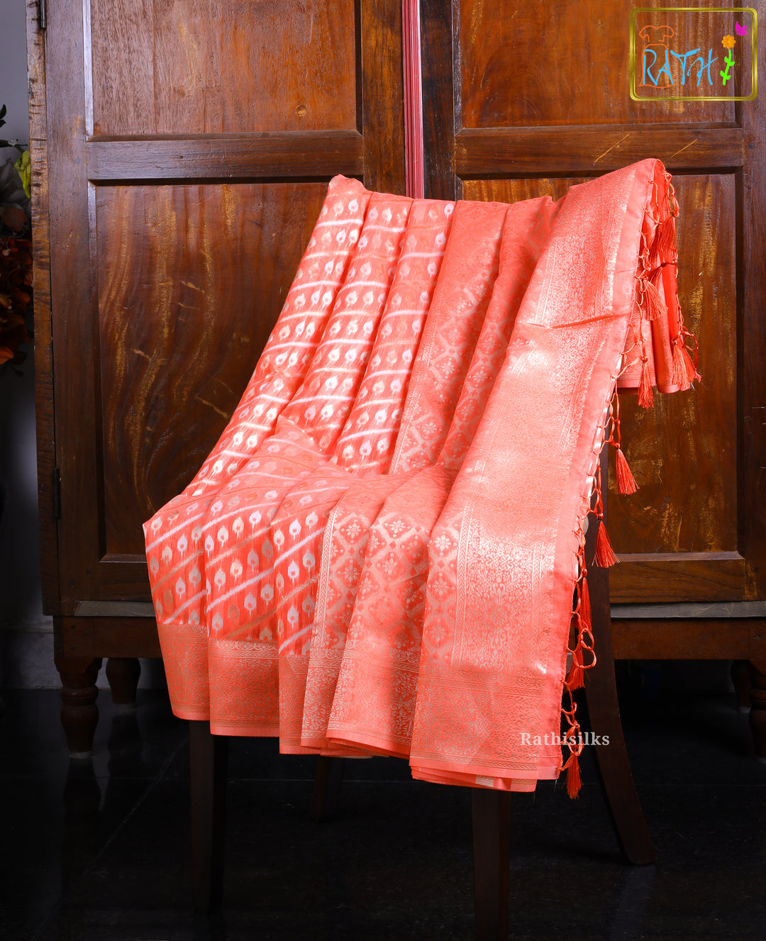 Pastel Cream & Peach Woven Border Synthetic Organza Saree