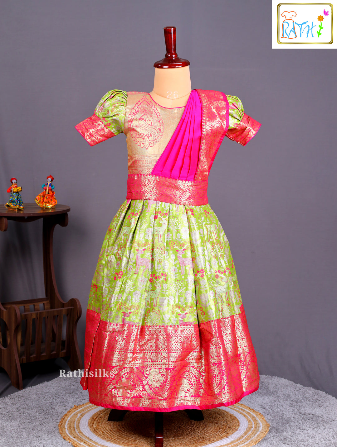 Pink & Teal Art Silk Peacock Brocade Stitched Saree Dress