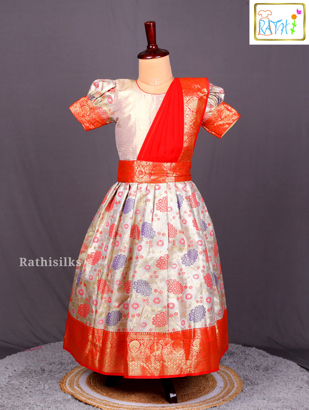 Violet & Orange Art Silk Brocade Stitched Saree Dress
