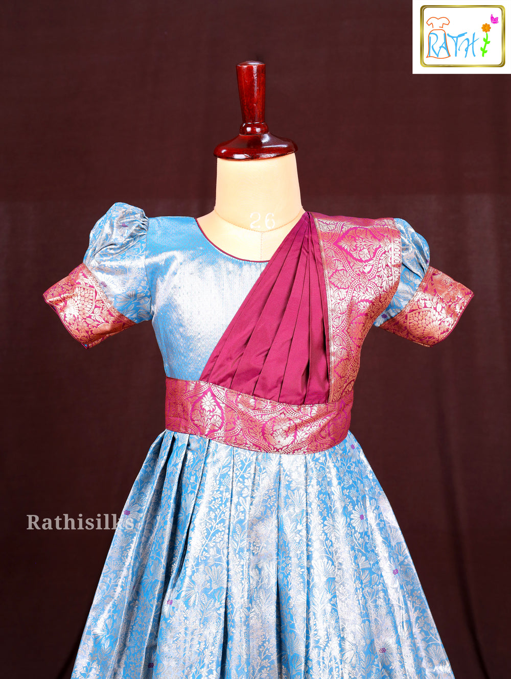Elegant Light Blue & Magenta Art Silk Saree Dress