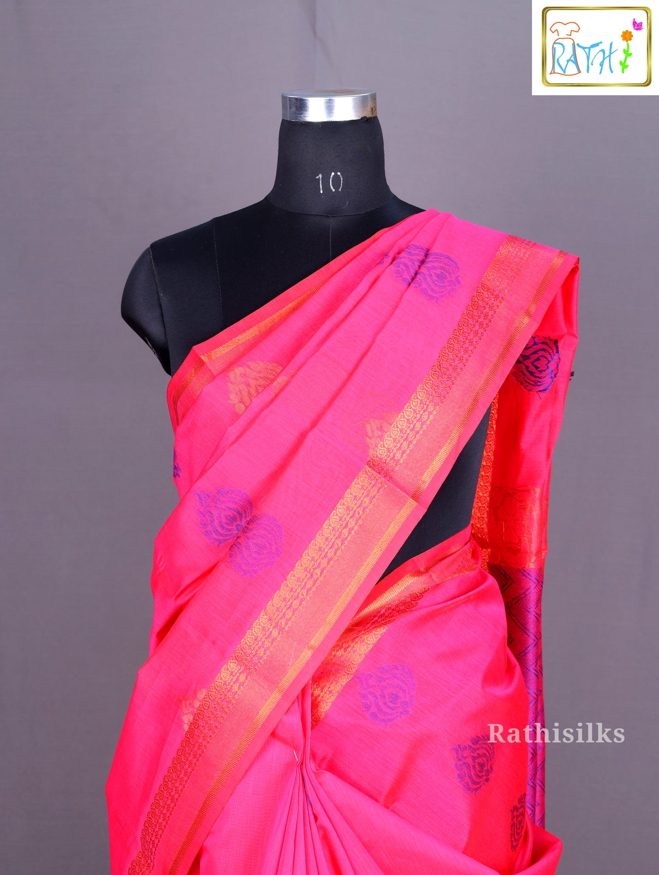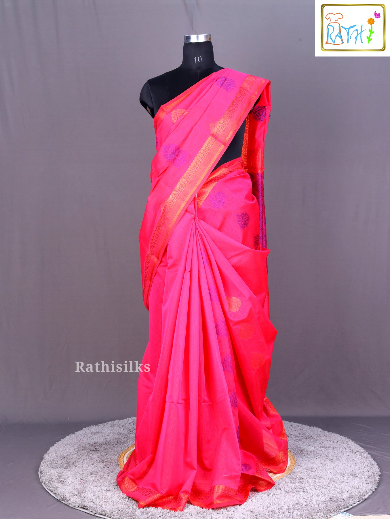 Women's Festive Saree in Bright Pink with Woven Zari and Silk Buttas