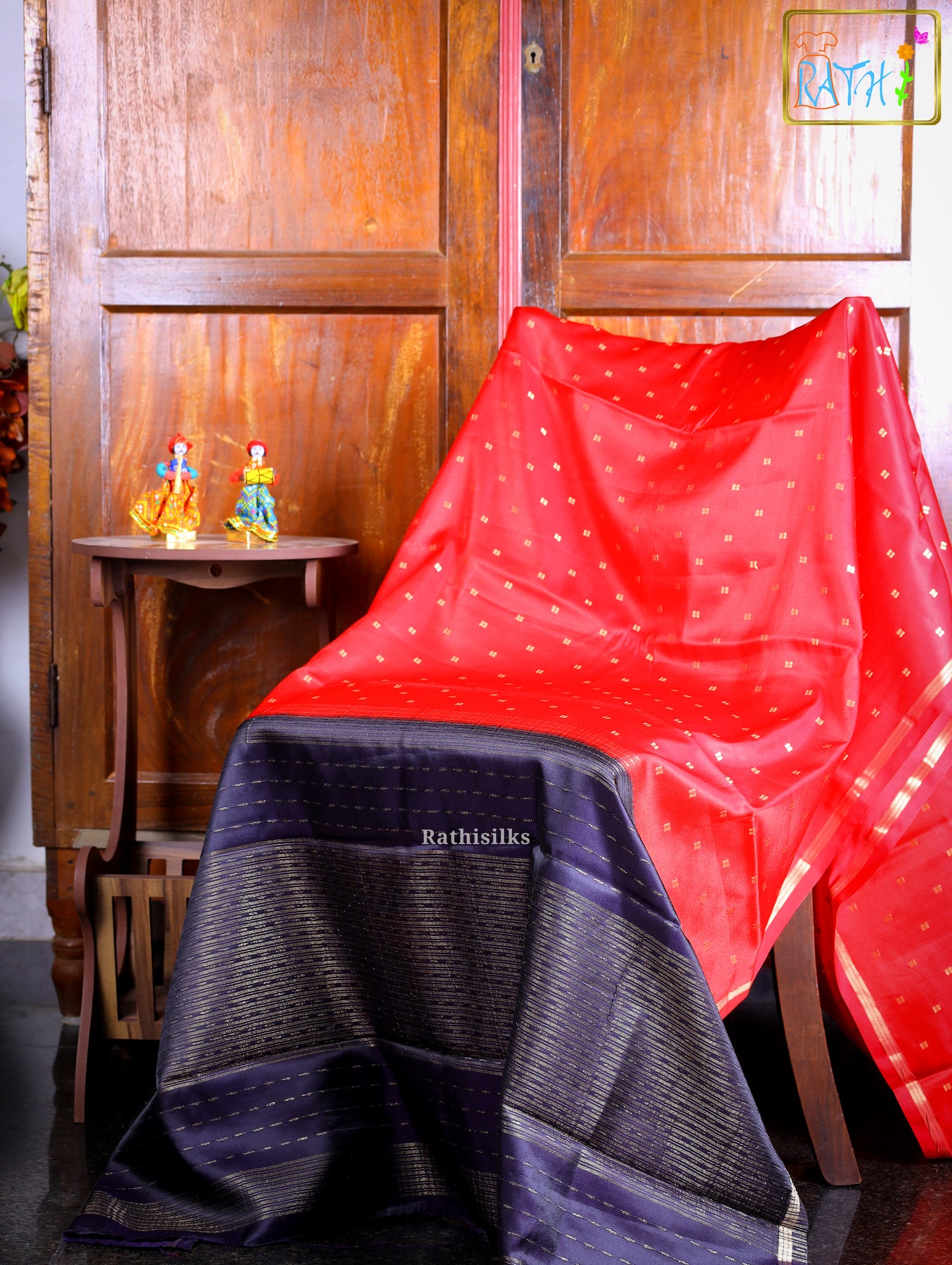 ·         Bold red crape art silk fabric with soft sheen