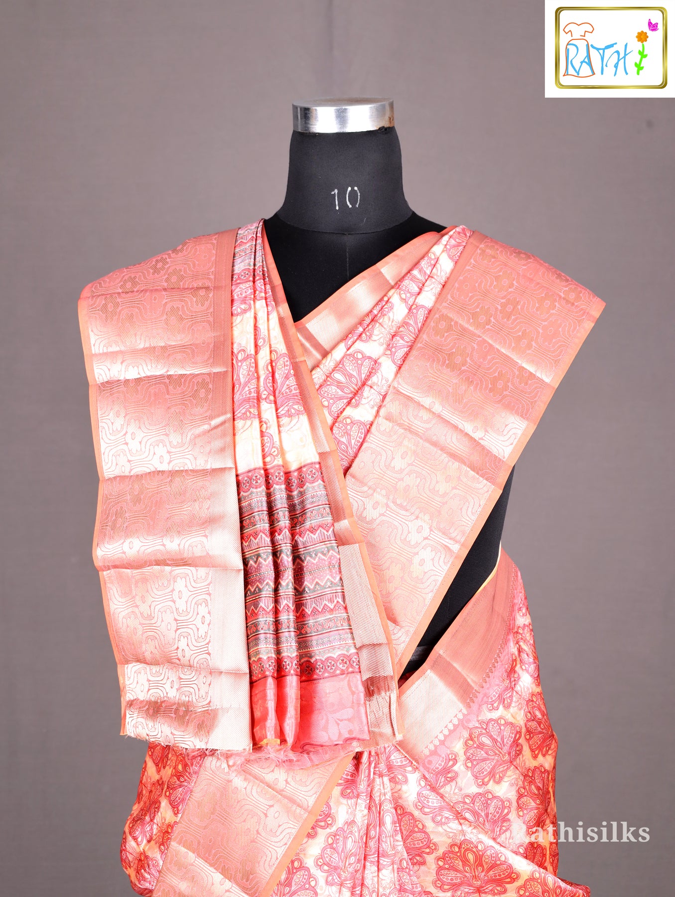 Graceful Peach Synthetic Saree with Floral Embroidery
