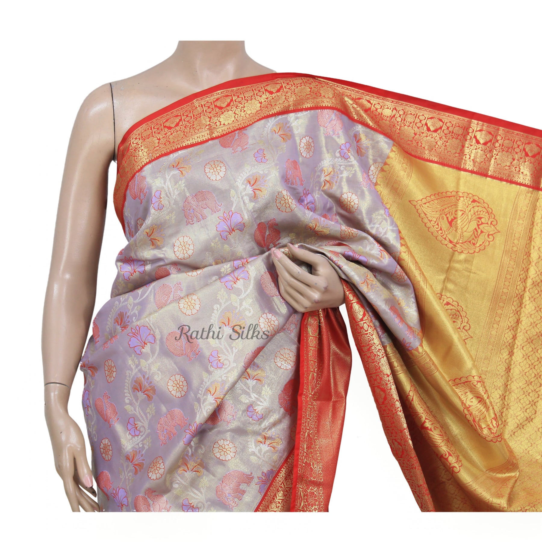 - Border Style : Broad Red & Gold Zari Border with Floral Design