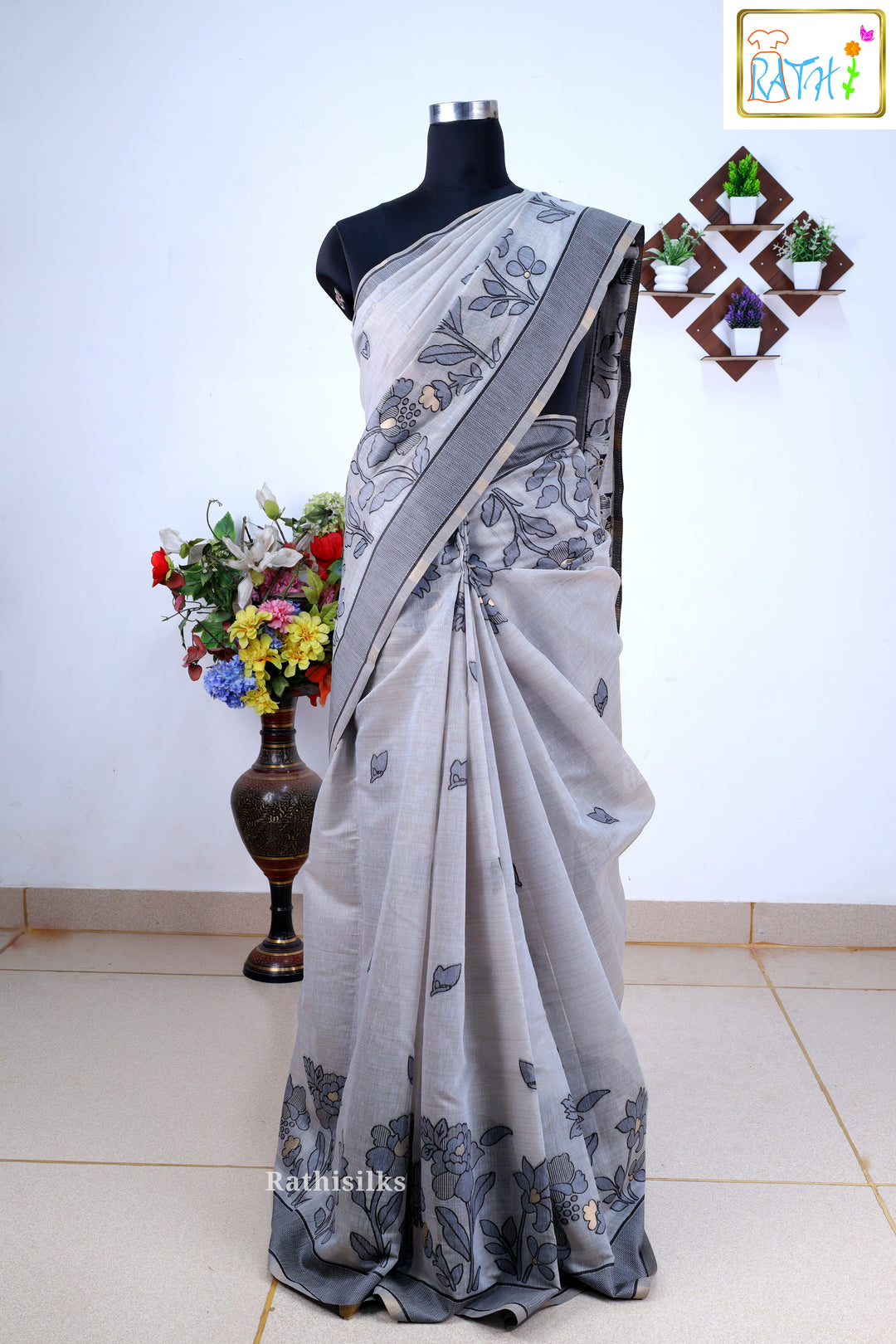 Synthetic Floral Print Saree