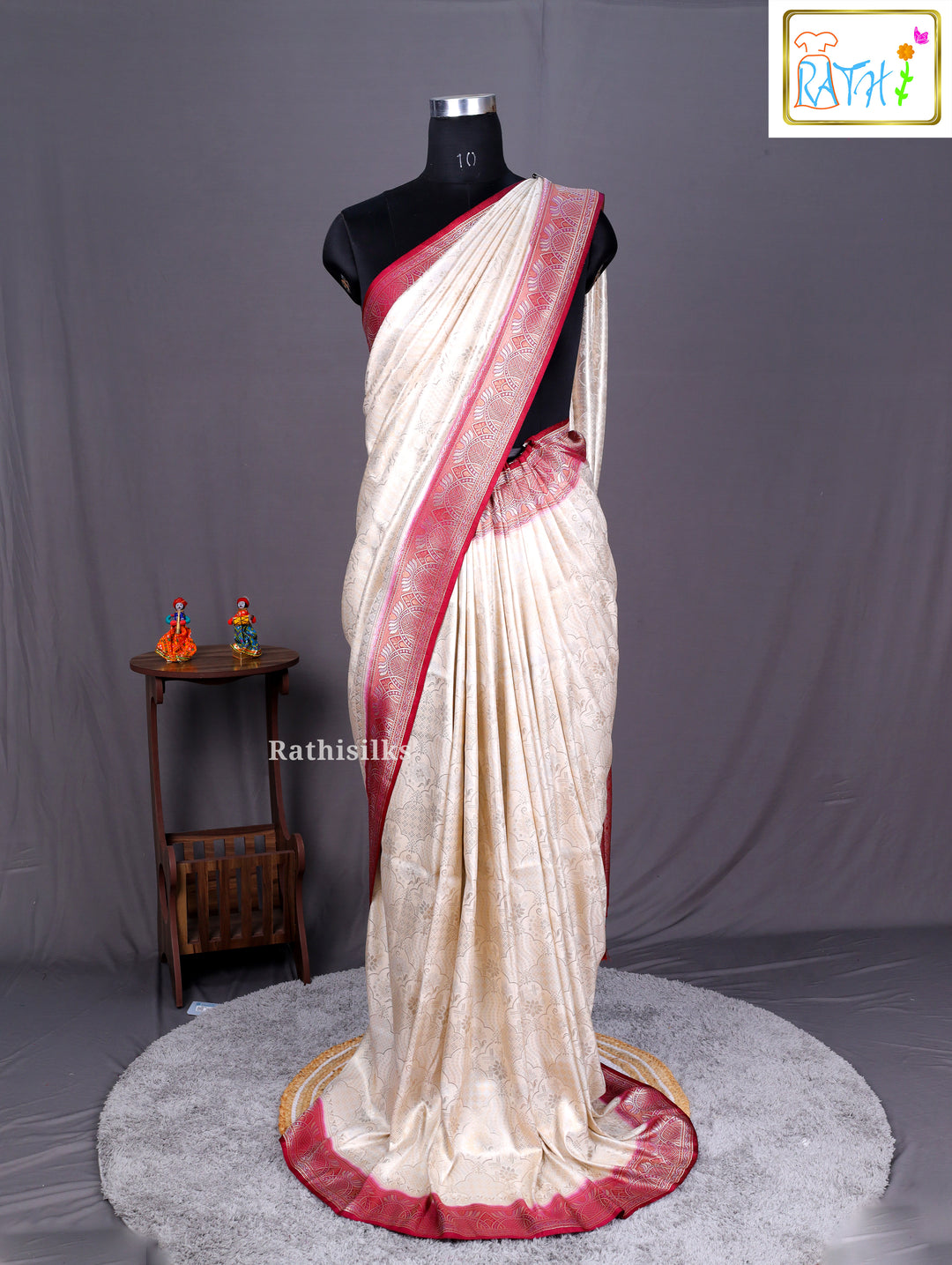 Cream & Maroon Banarasi Soft Silk Saree