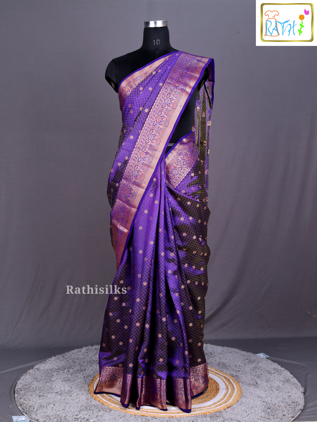 Majestic Dual-Tone Purple & Black Synthetic Brocade Saree
