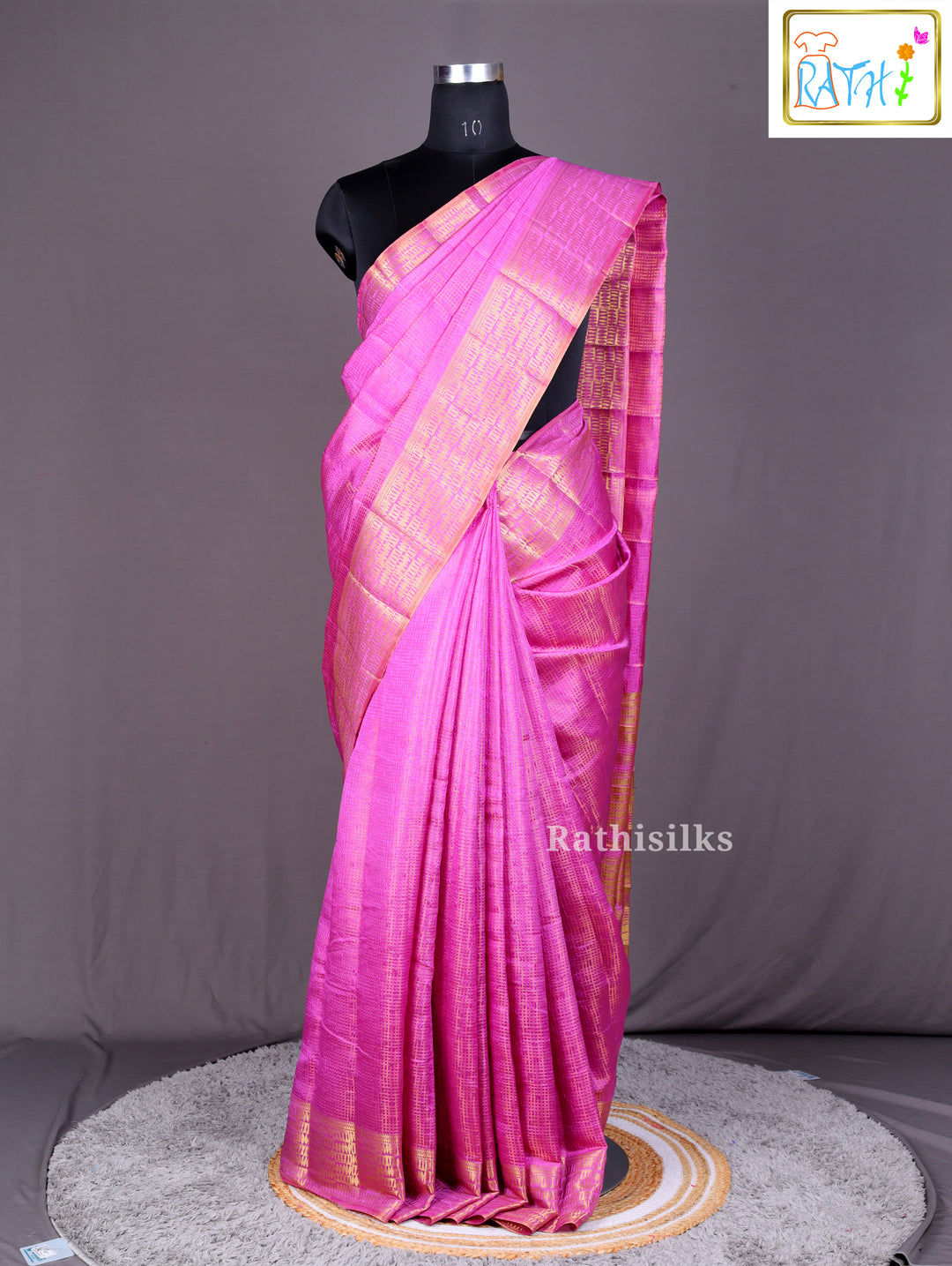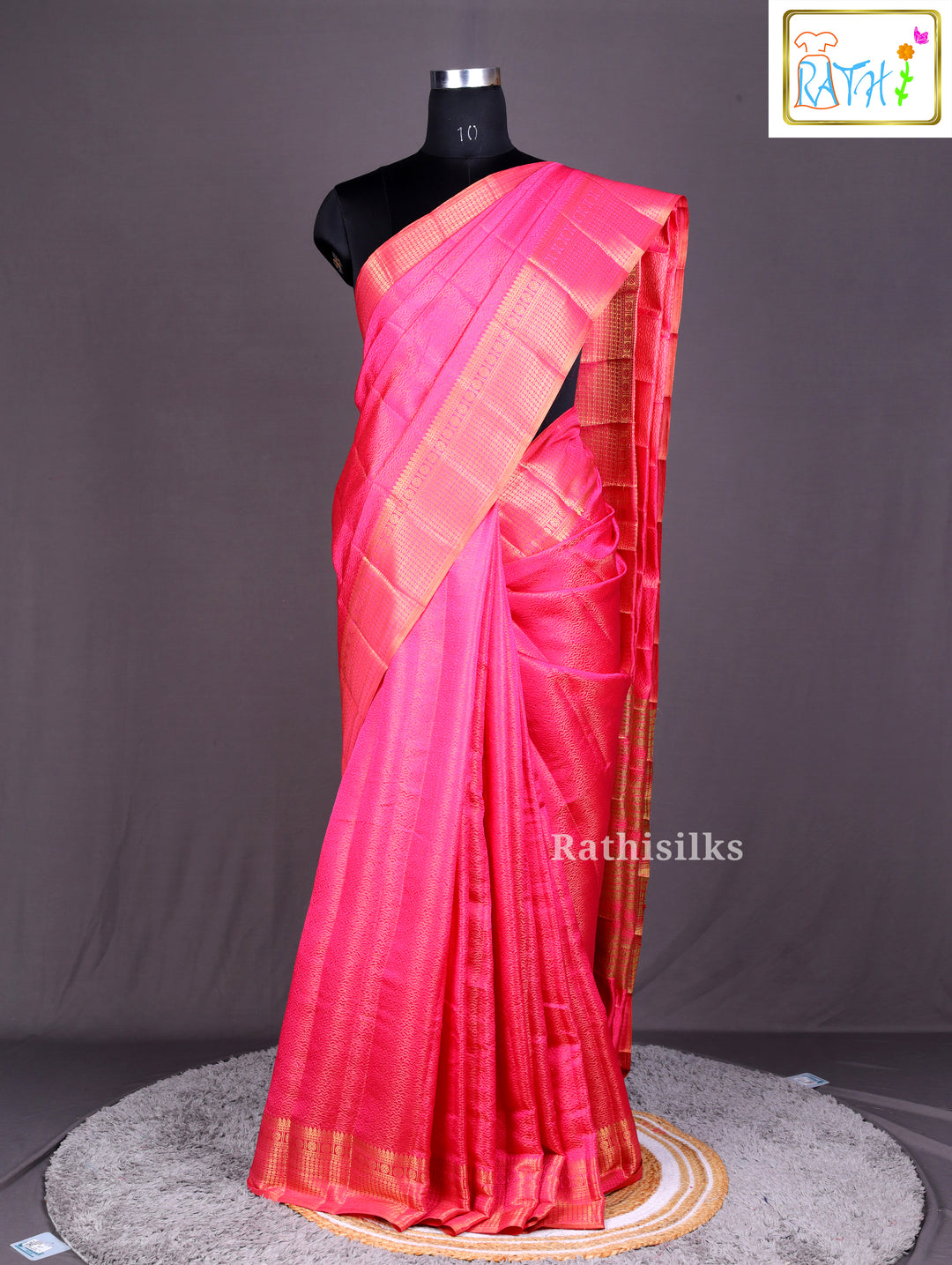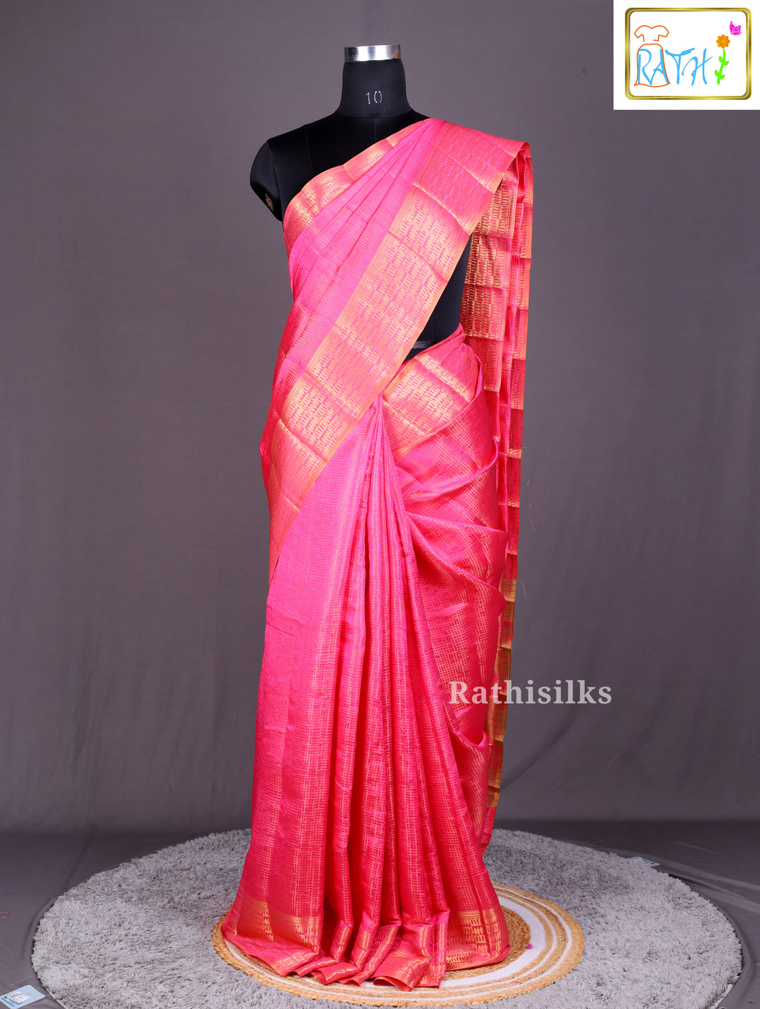 Bright Pink Art Silk Saree