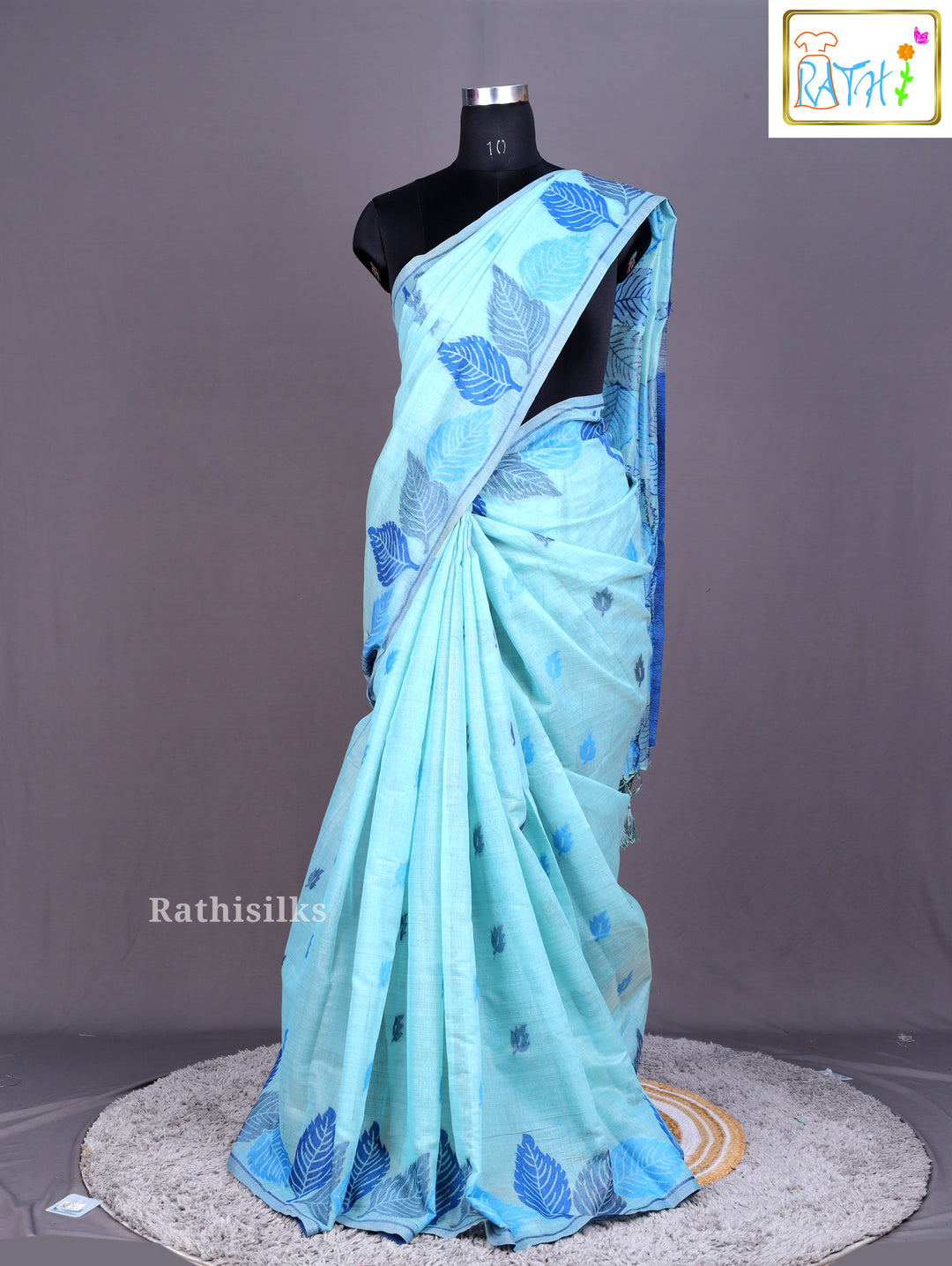 Aqua Blue Leaf Print Saree