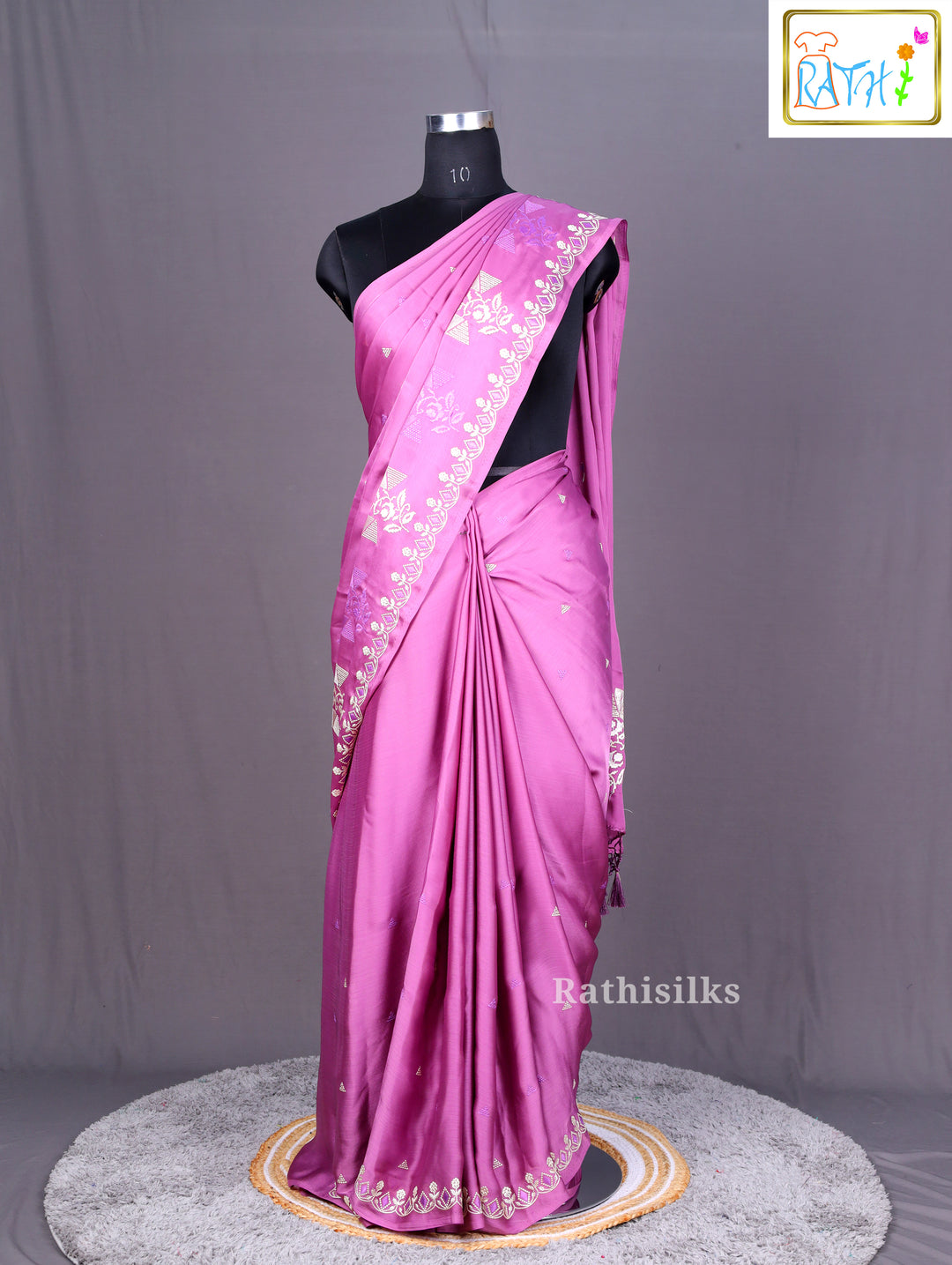 Light Grey Synthetic Saree